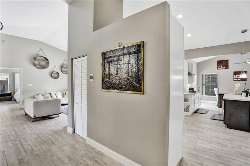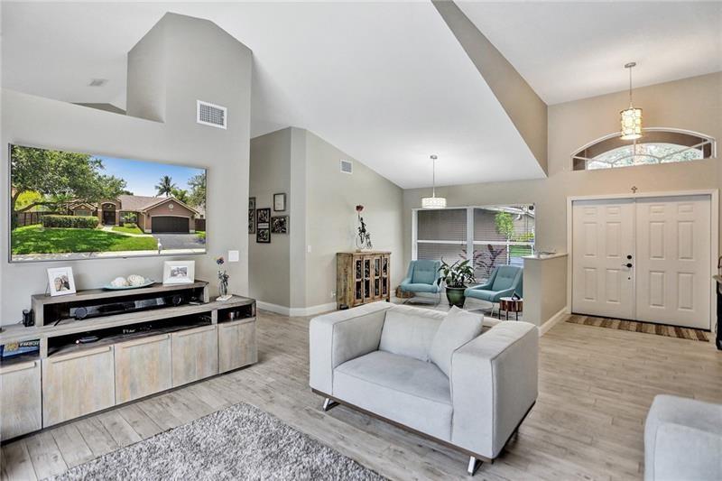 Nestled on a private fenced lot, this one story Home is just waiting what you've been looking for! Open, bright and airy floor plan featuring Newer roof (2018), totally and tastefully upgraded wood like tile floors throughout, upgraded kitchen with quartz countertops and newer SS appliances, upgraded bathrooms, walk in closets and so much more. This home has an amazing happy energy that you will feel right when you park your car, from the swing on the tree in front of the house, to the double door entry and the view of the pool and lush landscaping as you enter the house. Lots of inviting natural light.